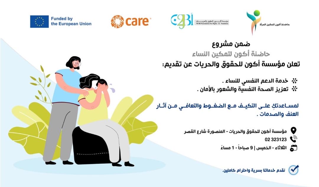 إطلاق حاضنة لدعم وتمكين النساء وتعزيز حقوقهن وصحتهن النفسية والقانونية.